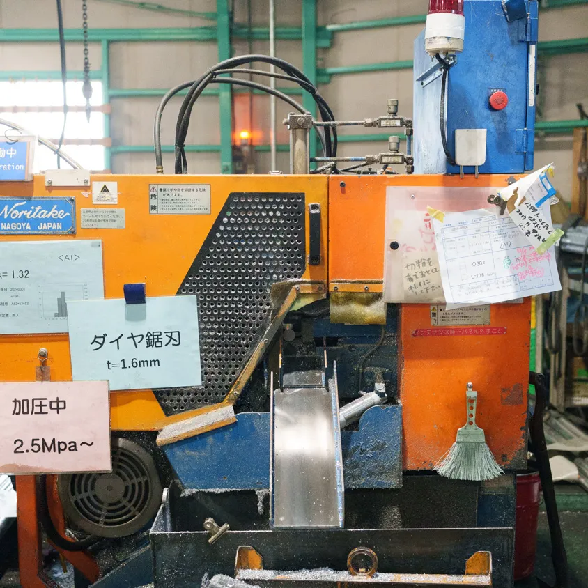 ノリタケマシン製超硬丸鋸切断機、シンカットマスターをメインに多種多様な鋼材に対応します。