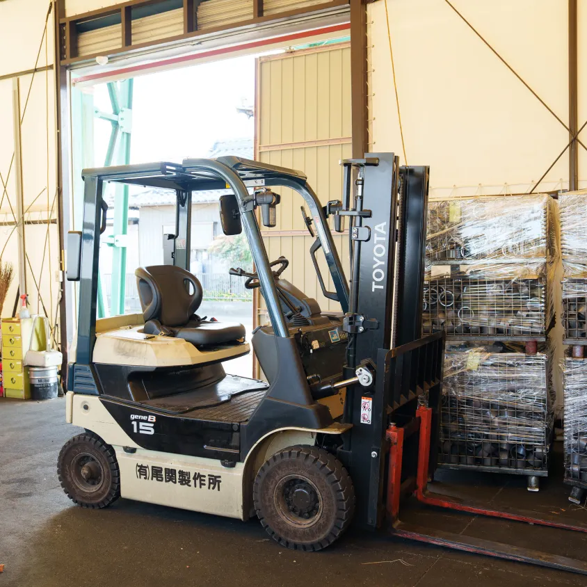 有限会社尾関製作所の製造現場はクレーンが稼働し、フォークリフトが行き交います。切断機は丸鋸が高速回転をして鋼材を切断しています。鉄か切れるくらいなので、鉄よりも柔らかい大抵の物は切れます。そんな丸鋸が工場のあちらこちらで回っていますので、危険じゃないとは言えません。だからこそ以下の3つのことを第一に考えております。